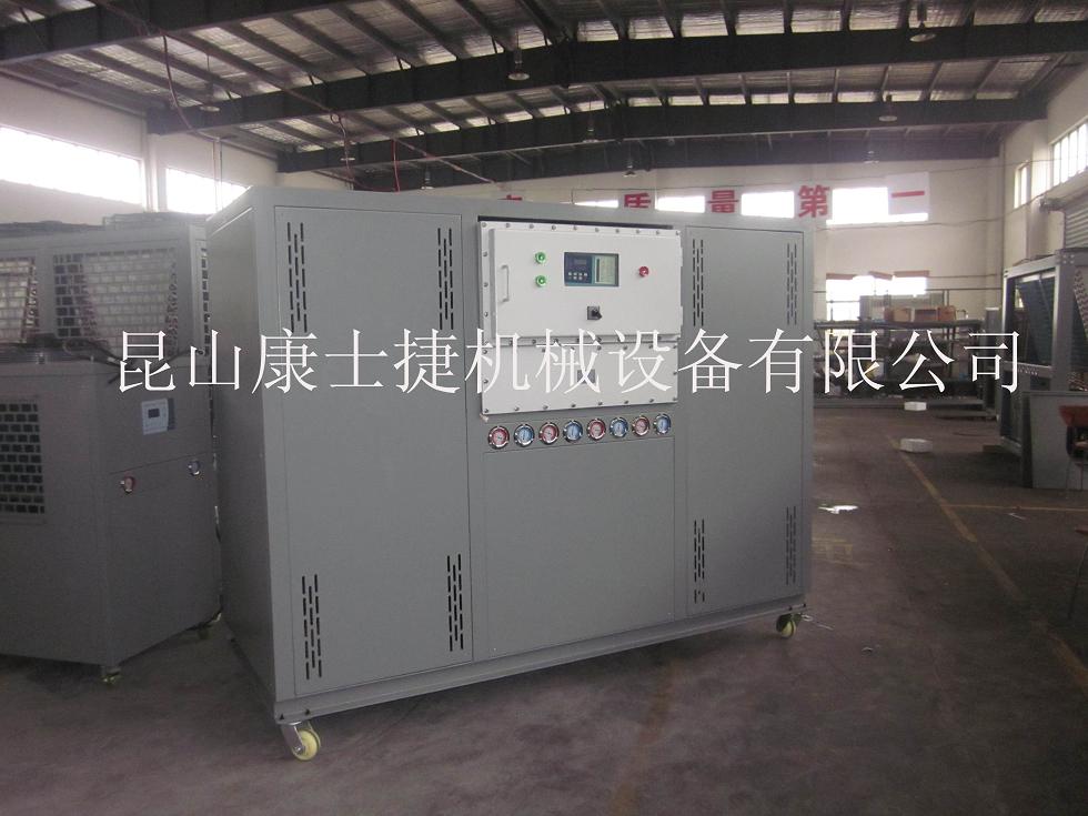 鹽水低溫防爆冷水機(jī)是以鹽水為載冷劑的低溫冷水機(jī),控溫范圍在0度到零下50度
